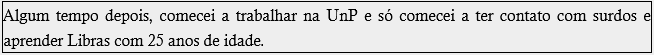 Algum tempo depois, comecei a trabalhar na UnP e só comecei a ter contato com surdos e aprender Libras com 25 anos de idade.
