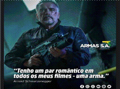Nas páginas de compartilhamento sondadas, percebemos a presença (ou tentativa) de estereotipagem do sujeito armamentista, por ele mesmo. No cronotopo[6] investigado, a aparição de figuras advindas de produções cinematográficas foi algo comum, como a do ator hollywoodiano Arnold Schwarzenegger, personalidade midiática conhecida pelos seus papéis em filmes de ação. A partir da análise de sua discursividade, é possível problematizar o conjunto de sentidos construído pelo meme, ao idealizar uma personagem, contextualizá-la em seu enunciado e relacioná-la ao porte de armas.