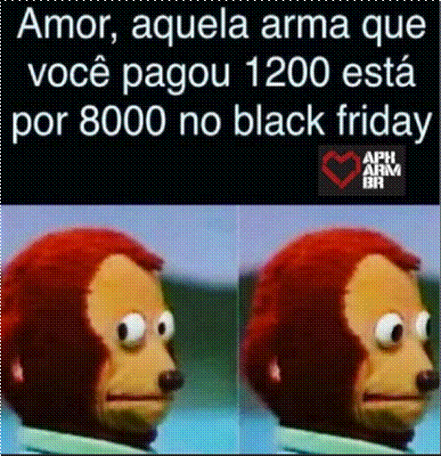 No meme acima temos o enunciado verbal “Amor, aquela arma que você pagou 1200 está por 8000 no black Friday” que sugere uma multiplicidade de sentidos. A linguagem gestual retrata uma possível situação apreensiva vivenciada pelo sujeito do discurso, que utiliza um modelo image macro[7] para construir sentidos. Trazendo os enunciados verbais e não-verbais para o contexto econômico brasileiro, os sentidos gestados direcionam para o alto valor aquisitivo de uma arma de fogo, e que a compra desse artefato bélico se destina apenas aos sujeitos pertencentes às classes sociais que têm condições financeiras confortáveis para adquirir o armamento.
