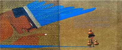 Formulado nesses termos, esse traço distintivo gera o entendimento de que as relações dialógicas engendradas entre os enunciados verbais e visuais desvelam os sentidos da narrativa e apontam para o jogo dramático dessas duas vozes que contam a história na densidade da palavra e da ilustração, revelando, portanto, marcas da hibridez de um texto verbo-visual. Em suas dimensões, texto e imagem intensificam o processo de apreensão em um contínuo ressignificar, fruto das diferentes relações entre esses enunciados nos espaços das páginas.