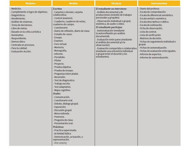 Modelos, medios, técnicas e instrumentos en la evaluación