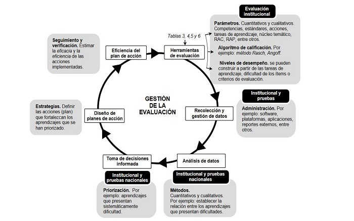 La evaluación educativa en Colombia es un proceso fundamental para valorar el desempeño y progreso de los estudiantes, legitimar los procesos de formación, determinar el alcance de los reguladores curriculares, el valor que agregan entre los ciclos educativos y en general la gestión de las instituciones, sus actores y el sistema educativo del país. Así, la evaluación supone un requisito para las instituciones que buscan la excelencia académica o el mejoramiento de los procesos educativos, situación que conlleva a que el modo en que se implementa la evaluación tendrá no solo una importante influencia en los resultados de la gestión y el impacto en las decisiones que se toman como lo plantea Regueira y Del Potro (2017), sino también en la metagestión del sistema.