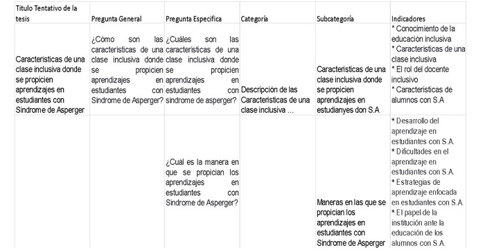 Derivado de lo anterior se identificó un vacío en cuanto a la comprensión de las características de una clase inclusiva que propicie aprendizajes en estudiantes que presentan Síndrome de Asperger, así mismo el reconocimiento del autismo derivado de este trastorno. Por consiguiente, se generó una pregunta y un objetivo que vincula el proceder de la presente investigación, la interrogante inicial se refiere a ¿Cómo son las características de una clase inclusiva donde se propicien aprendizajes en estudiantes con Síndrome de Asperger?, así mismo el objetivo generado está enfocado a explicar las características de una clase inclusiva donde se propicien aprendizajes en estudiantes con Síndrome de Asperger.