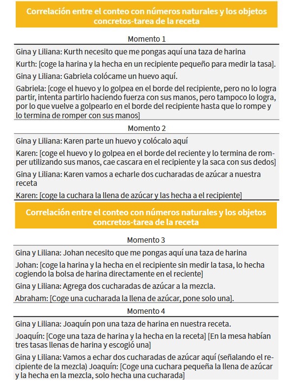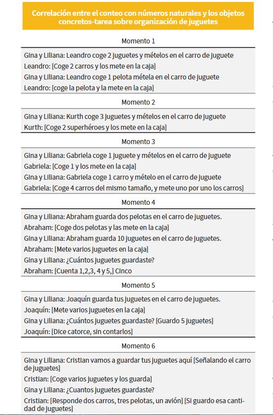 Conocimiento previo de matemáticas: Correlación entre el conteo con números naturales y los objetos concretos