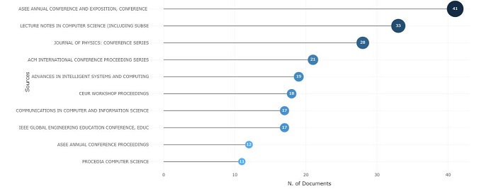 Al evaluar, a través de la metodología establecida en R studio, cuáles son los recursos más relevantes, en los que se encuentran las palabras clave de esta investigación, y se hallaron los resultados de la Figura 5, encontrando que en las conferencias anuales y exposiciones este tema ha estado tomando gran relevancia.