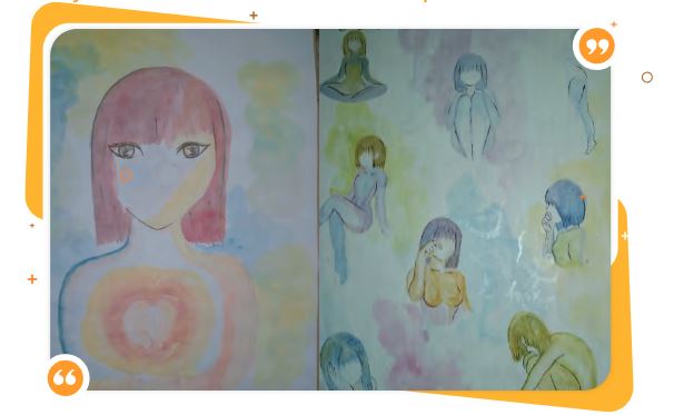 Esta dimensión artística no es casual, varios participantes hablaron de la forma como fue apareciendo una cierta inclinación de esta naturaleza, dibujar, pintar, tocar un instrumento musical, tejer, entre otros, aparecen como prácticas nuevas en medio del encierro. Se evidencia que lo artístico aparece con una doble posibilidad: de una parte, como una técnica para paliar las circunstancias de la pandemia, efectivamente, el confinamiento trajo consigo un aumento en los niveles de ansiedad, lo que resultaba angustioso para los sujetos. La actividad artística permitió afrontar la angustia y disminuir la ansiedad producida por la pandemia. Por otra parte, estos ejercicios artísticos les dieron la oportunidad para entrar en terrenos no explorados previamente y, de paso, les permitieron no solamente sentirse mejor, sino devenir alguien diferente. Est o permite entender las prácticas como ejercicios artísticos que no se agotan en su papel de disminuir la angustia, sino que son valiosas contribuciones al proceso de creación que se juega allí. La dimensión artística fue, para algunos, constituida como nuevo lugar de deseo. Figura 4