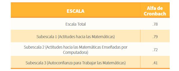 La escala AMMEC (Actitudes hacia las Matemáticas y las Matemáticas Enseñadas con Computadora), fue validada por Ursini, Sanchez, Orendain y Butto (2004, 2009); fue diseñada con el propósito de contar con un instrumento que midiera las actitudes hacia las matemáticas y las matemáticas enseñadas con el apoyo de la tecnología, de alumnos de secundaria. Aquí la tecnología es concebida como una herramienta para el aprendizaje; sin embargo, se puede aplicar en distintos contextos y con personas de distintas edades. Su grado de confiabilidad es bastante alto (alfa de Cronbach = 0 .79) y ha sido ampliamente utilizada con jóvenes mexicanos.