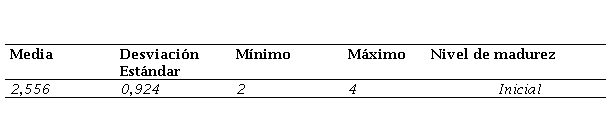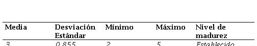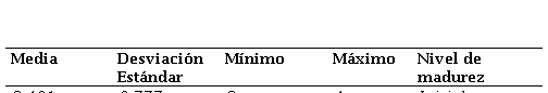 En el indicador de variedad de requisitos, con una media total de 2,444 indicando un nivel de respuesta de “parcialmente en desacuerdo” con un nivel de madurez inicial denotando una poca intención en relación a la implementación de sistemas de gestión para ampliar el conocimiento y fomentar una cultura que promueva la innovación al cambio, dichos aspectos son clave en el fortalecimiento de la capacidad de la empresa en la adaptación, mejora y transformación sus procesos y servicios para pasar a un siguiente nivel de madurez.