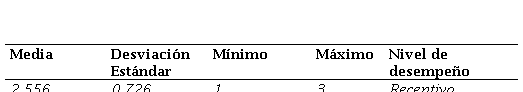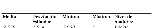 Finalmente, al facilitador de estilo de dirección, con una media total de 2,556 indicando un nivel de respuesta “parcialmente en desacuerdo” con un nivel de madurez inicial con poca intención en que denota que el nivel de liderazgo bajo que puede incurrir en que la empresa no este correctamente dirigida.