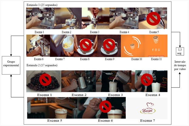 Figura 2. Se observa el proceso de visualización de los reels de las cafeterías Sierra Bella y El Espigal dividido en cada una de las escenas las cuales fueron expuestas para el grupo de control.