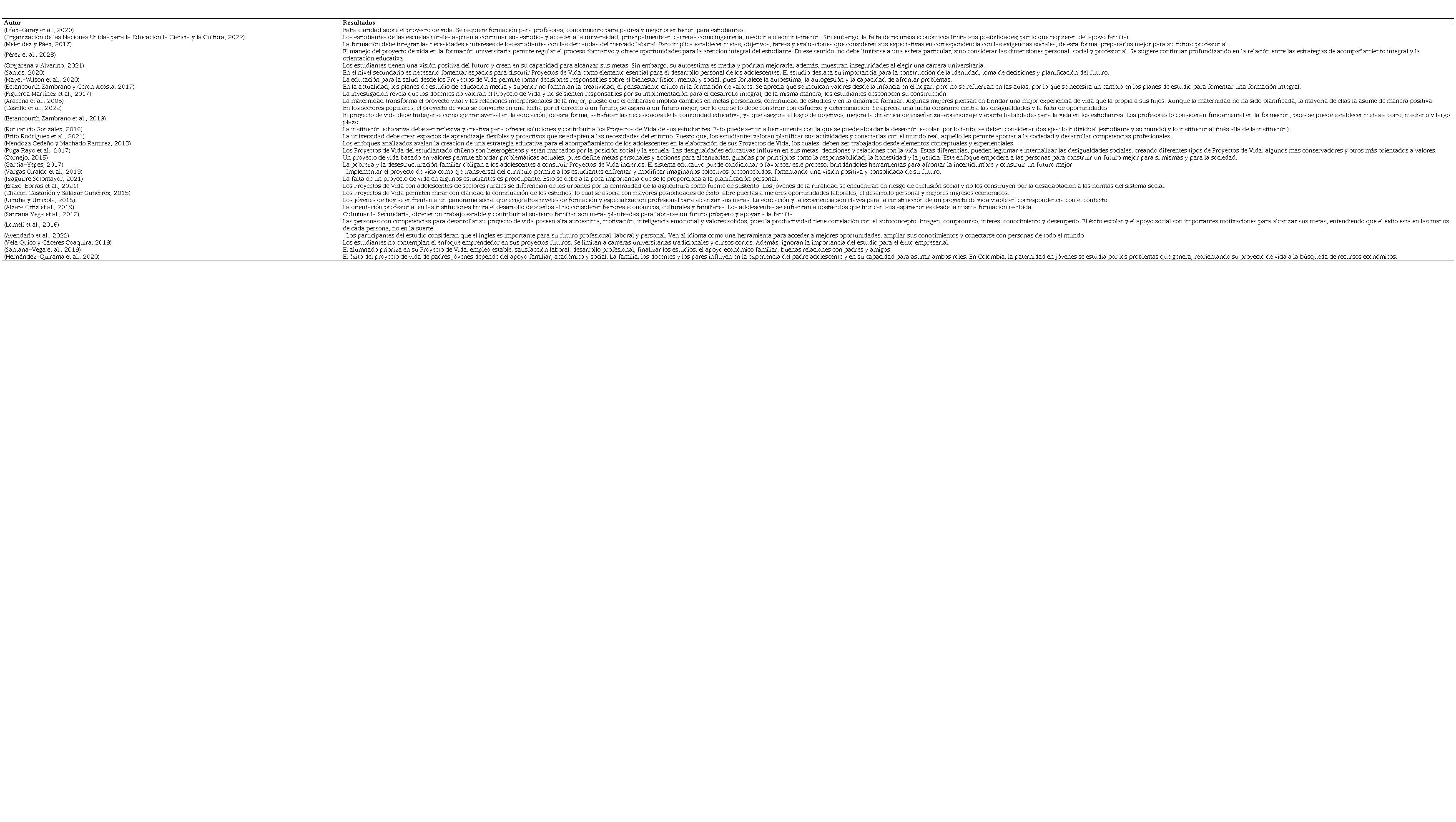 En el presente estudio se realizó una revisión sistemática de la bibliografía existente relacionada con los proyectos de vida en el campo educativo de los últimos 20 años, a partir de aquello se pudo detectar que esta temática es un campo poco explorado que debería profundizarse, sobre todo por los resultados positivos expuestos en las investigaciones identificadas.