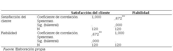 El resultado obtenido en la hipótesis especifica dos, se admite la hipótesis alterna como se muestra en la tabla 3 y con un 0,000<0,05 de valor de significancia, en consecuencia, se relaciona significativamente entre la fiabilidad y satisfacción del cliente en la agencia Lima Centro Caja Municipal de Sullana – 2022 y tiene 0,672 de grado de relación lo que indica que es buena y positiva según el valor del coeficiente de Spearman.