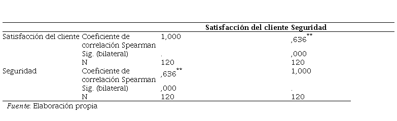 También, se observa en los resultados una relación buena y positiva (Spearman de r=0.636) entre seguridad y satisfacción del cliente de la agencia Lima Centro de Caja Municipal de Sullana durante el año 2022. Esto se puede explicar que en la dimensión seguridad se identificó que existe un porcentaje mínimo del servicio que no cubre las expectativas del cliente, siendo algunos aspectos como la infraestructura, los equipos, el comportamiento de los colaboradores que transmiten confianza y credibilidad cuando realizan operaciones los clientes. Teniendo este indicador debería potencializar aspectos de mejora ya que las empresas del sistema financiero se caracterizan por este factor que trasmite a su cliente. Se sugiere reforzar los conocimientos de los colaboradores de atención al cliente a través de círculos de mejora en el correcto funcionamiento para atender al cliente de manera que transmitan confianza y credibilidad.