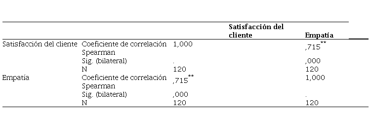 Finalmente, de los resultados se identifica una relación buena y positiva (Spearman de r=0.715) entre empatía y satisfacción del cliente agencia Lima Centro de Caja Municipal de Sullana 2022. Así mismo, se observa que también no cubre la expectativa del cliente porque el servicio presentó algunas falencias tale como: trato amable, cortesía y un saludo hace la diferencia. Es decir, que cuanto más personalizado y dirigido sea servicio ofrecido más satisfecho estará el cliente. Se sugiere brindar un servicio personalizado a los clientes y establecer que su prioridad siempre será los requerimientos del cliente, establecer un speech de atención.