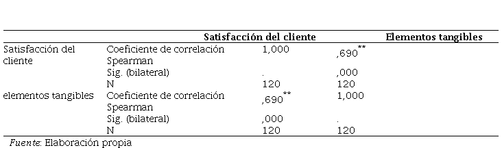 De acuerdo al resultado de la hipótesis especifica uno, se aprecia que existe correlación de r=0.690, el cual, representa una correlación buena y positiva, se admite la hipótesis alterna, por lo tanto, se relaciona significativamente los elementos tangibles y satisfacción del cliente en la agencia Lima Centro de la Caja Municipal de Sullana durante el año 2022.