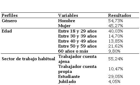 Para poder obtener los datos, se difundió un formulario a través de canales electrónicos sin limitación geográfica y con encuestas personales realizadas en la calle en la ciudad de Barcelona durante los meses de febrero a mayo de 2022. El cuestionario pretendía obtener información relevante de los usuarios dependiendo de si utilizaron o no el servicio del taxi o el VTC en el año anterior (cabe destacar que en 2021 toda la sociedad seguía padeciendo las problemáticas y las regulaciones derivadas a la pandemia de COVID-19). La muestra cuenta con un total de 592 encuestados mayores de 18 años (n = 592), siendo representativa para los diferentes perfiles de ciudadanos que presentan la sociedad actual (tabla 1). Teniendo en cuenta el amplio nivel descriptivo de la muestra, para un intervalo de confianza del 95%, el error muestral de los resultados de la encuesta es de ±4,69%.