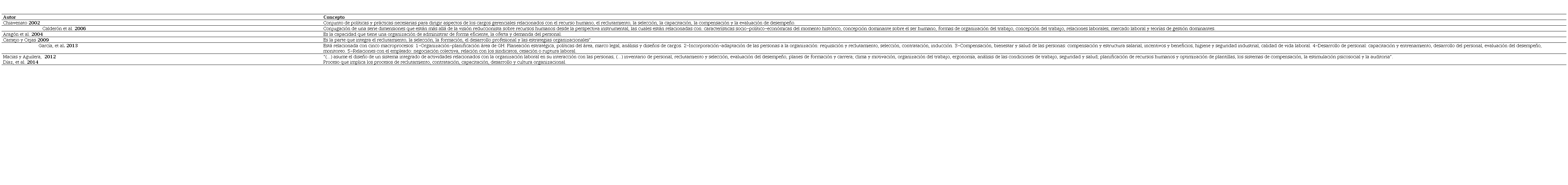 En relación con la gestión de la competitividad en el desarrollo laboral de las personas en las organizaciones, en la Tabla 2 se describen algunas conceptualizaciones del proceso en el contexto empresarial.