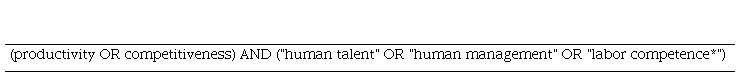Se inició definiendo el problema a investigar, el cual, se relacionó con las afectaciones de la globalización y el impacto que ésta produce en la gestión administrativa, operativa y estratégica del talento humano en las empresas. En el segundo paso, se surtió con la búsqueda de información, para lo cual, se plantearon seis ecuaciones de búsqueda descritas en la Tabla 3, utilizando los términos clave “productividad, competitividad, talento humano, gestión humana, competencias laborales” y los operadores boléanos “AND; OR”, en las bases de datos bibliográficas Scopus y Web Science.