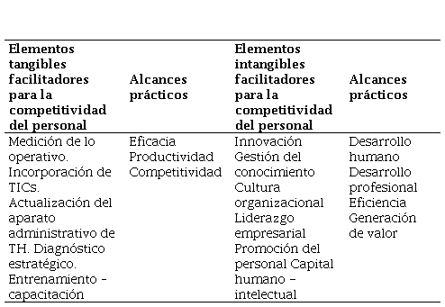 Estos, entre otros factores, permiten que las organizaciones puedan desplegar todo su potencial y capacidad de funcionamiento, es decir, su efectividad (eficiencia y eficacia) en la producción de bienes y servicios; en donde la integración de las capacidades del personal son claves para este propósito. Al respecto, no cabe duda que, el aparato productivo y competitivo debe disponer de los diferentes recursos físicos, económicos, instrumentales, tecnológicos y por supuesto de las capacidades y competencias humanas aplicadas al trabajo. Pero, aunque el talento humano es un factor clave de éxito en la productividad y competitividad empresarial de las compañías (González, 2005), al igual que los recursos que las organizaciones puedan poseer; éstos: