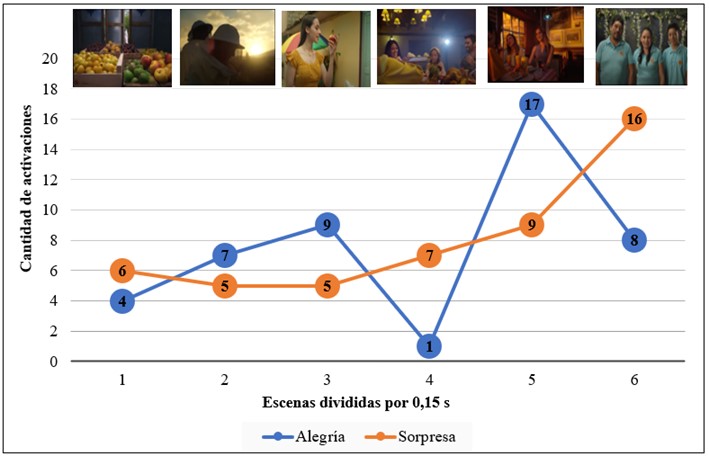 Abstract: Advertising messages elicit emotional reactions in consumers. Attempts have been made to explain how advertising works within affective processes and the central position that information selection takes in consciousness. These breaches arise when examining emotions in advertising, especially in advertising's digital environments and media. Therefore, the objective of the research was to inquire into the digital advertising scenes of "Origen Ambateño 2022" from the facial expressions of the basic emotions that most attracted the audiences' attention. A quantitative approach, descriptive level, and Neuromarketing context were used, using the AffdexMe tool for university students of both sexes. As the main results, the emotions of joy and surprise were the most significant in the scenes. However, the most significant negative emotional state was disgust. However, disgust, anger, fear, and sadness presented low activations between the ascents and descents in each scene. The "Origen Ambateño 2022" campaign generated more positive than negative emotions. So, its benefits are reflected in the fact that digital advertising is more remembered by the audience, promotes, and encourages the consumption of local products, and makes visible all the productive capacity and territorial wealth.
