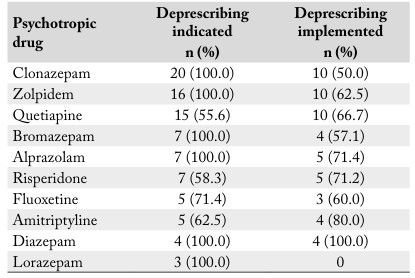 Conclusions: At least 1 psychotropic drug was indicated for deprescription in the majority of the patients, and in most cases it was effectively implemented. One-third of the prescribed psychotropic drugs were indicated for deprescription, and more than half were successfully deprescribed.