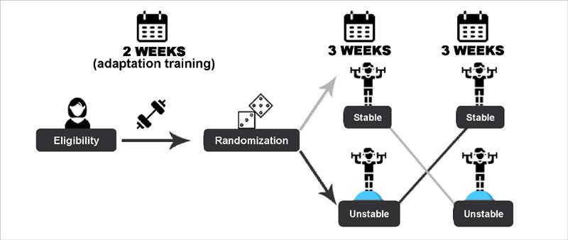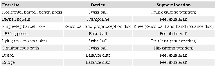 It is possible that adding unstable surfaces to resistance training can improve balance, considering that resistance training is not very effective for this purpose. For example, benefits in muscle strength, balance, and apprehension about falling have been observed in other studies that compared instability training with resistance training on a stable surface.8,9,10 The main difference was that unstable surfaces stimulate proprioception by increasing neuromuscular demand.13 However, the unpredictable movements involved in training on unstable surfaces can pose a risk to joints.25