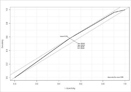 Figure 1 shows the ROC curve of the logistic regression model, with variables selected by backward stepwise elimination. Thus, we obtained a model that, with relative accuracy, detected patients who fell in the last 12 months.