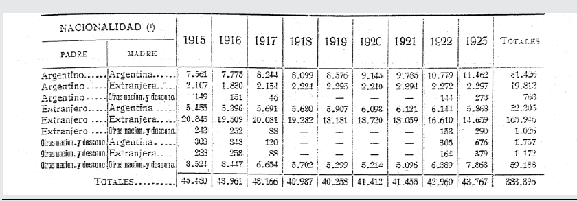En 1916 hubo 43.961 nacimientos, lo que implica una tasa de 27,3 nacimientos cada mil habitantes. Se advierte que continúa la tendencia descendente, que ya se observaba a comienzos del siglo XX.