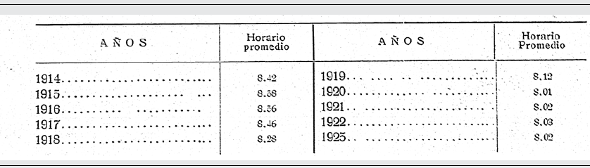 En 1916 estaban ocupadas en la Ciudad 312.997 personas; de ellas, 224.189 eran hombres, 66.452 mujeres y 22.256 menores. La jornada de trabajo en fábricas y talleres era, en promedio, de 8,56 horas diarias (Cuadro 5). El promedio general de los salarios ya evidenciaba una diferencia entre el salario percibido por los varones y el que percibían las mujeres.