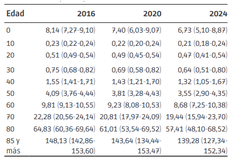 Palabras clave: Modelos demográficos-estadísticos, tasas de mortalidad, tendencia, pronósticos e intervalos de confianza..