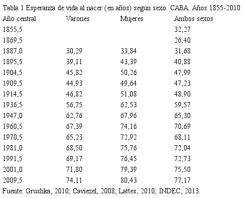 Grushka, C. O. (2010), “¿Cuánto vivimos? ¿Cuánto viviremos?”, en A. Lattes (ed.), Dinámica de una ciudad: Buenos Aires, 1810-2010, Buenos Aires, Dirección General de Estadistica y Censos, Gobierno de la Ciudad de Buenos Aires.