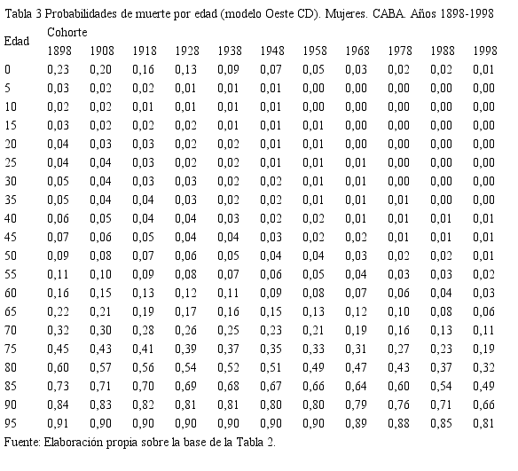 Las tablas de mortalidad de período tomadas como referencia hacen notar la mala calidad de los datos de partida, cuestión que le exigió a Müller (1974, pp. 2-4) realizar un importante tratamiento previo de la información. Además, las tablas de cohorte obvian el núcleo duro de los fuertes accidentes de mortalidad de fines del siglo XIX y principios del siglo XX, como los de viruela, cólera, fiebre amarilla (Grushka, 2010, p. 165), que solo reflejan indirectamente sus secuelas al permanecer años más adelante. Esta incidencia diluye la captación de hechos históricos puntuales de alto impacto que afectaron de manera particular a distintas cohortes.