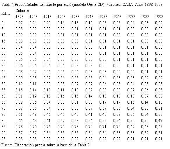 la construcción de tablas de vida de período a intervalos de 5 años para el período 1898-1998. Para ello se realizó: