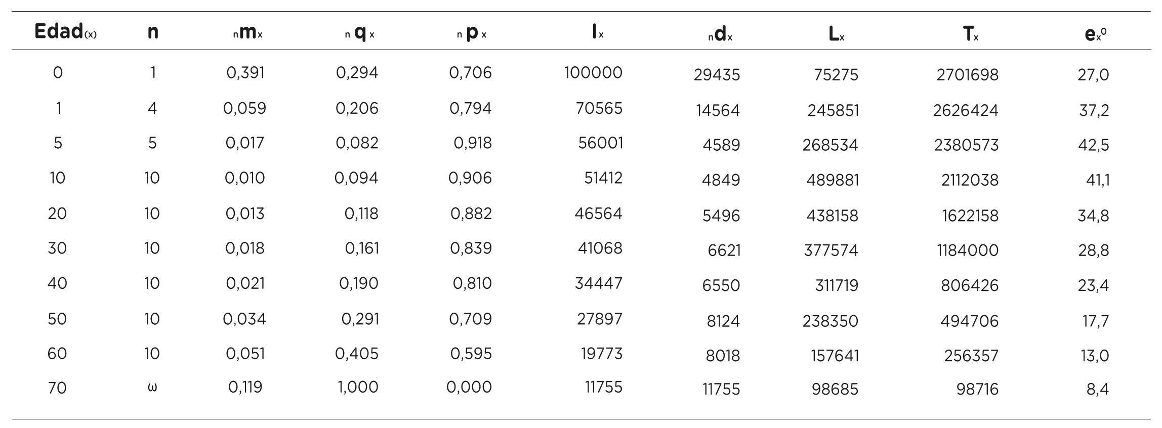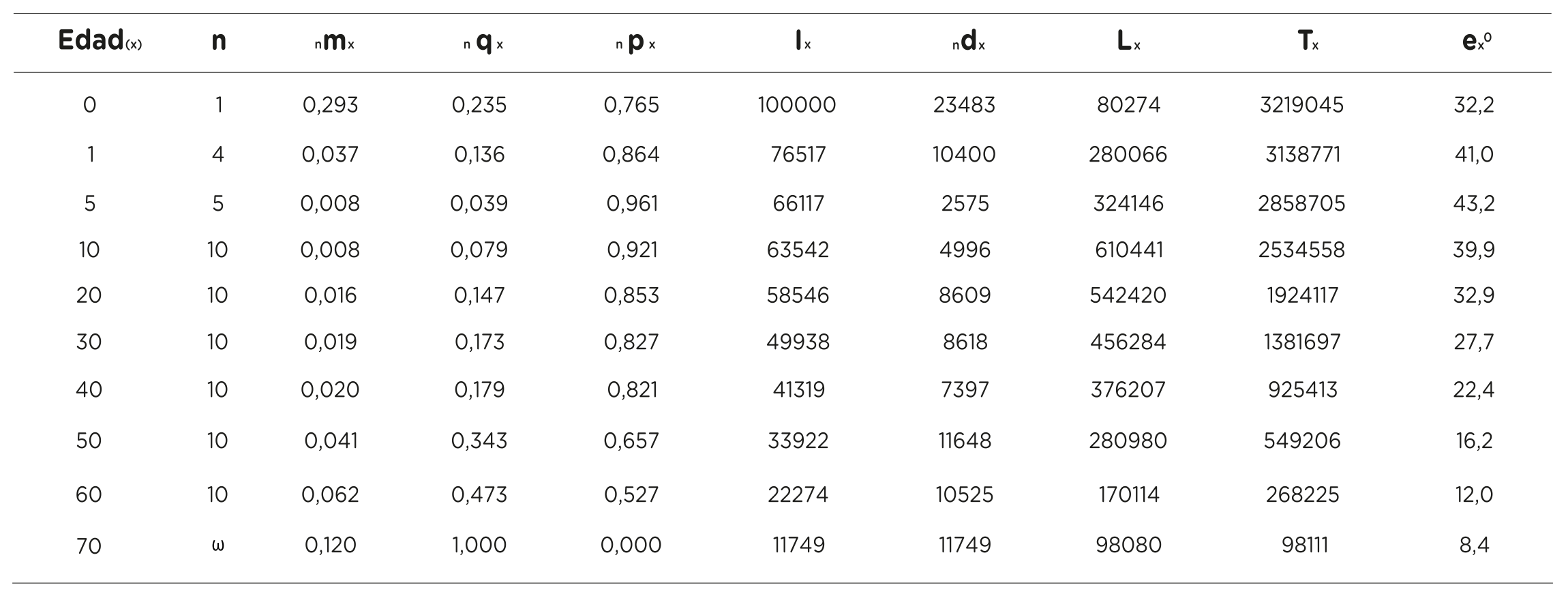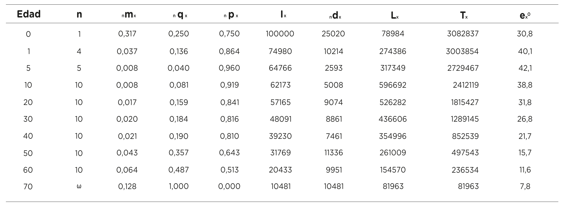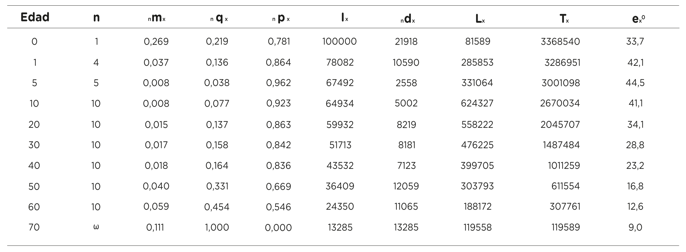 Fuentes y métodos para la construcción de la tabla de mortalidad