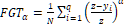 , donde α=0 para FGT0, α=1 para FGT1, α=2 para FGT2; N es el total de hogares; q son hogares pobres; z representa la línea de pobreza; y es el ingreso total del hogar. La brecha de pobreza se define como:
