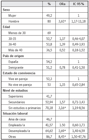 En la tabla 3 se presentan los resultados correspondientes al análisis multivariado. Los hombres (Ora = 3,62; IC 95% = 1,17-11,18), las personas con menor nivel de estudios (Ora = 3,16; IC 95% o = 1,19-8,56) y los participantes en situación de desempleo (Ora = 2,69; IC 95% = 1,40-6,59) presentaron mayor probabilidad de reducir el estrés. Además, se observó una tendencia estadísticamente significativa para el nivel de estudios.