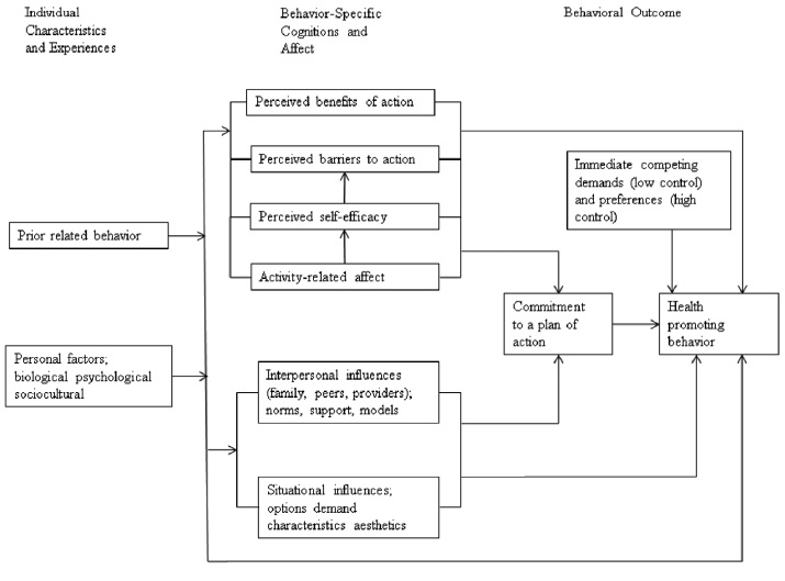 This concept involves patient perception about the anticipated personal benefits of pursuing positive health outcomes that might result from a given health behavior (11). Thus, it entails situational influences, interpersonal influences, activity-related affect, perceived self-efficacy, perceived barriers to action, and perceived benefits of action.