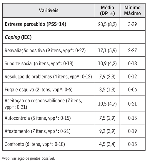 A média da pontuação da PSS-14 foi menor (20,5) do que a pontuação média possível de ser obtida com a escala (27 pontos).