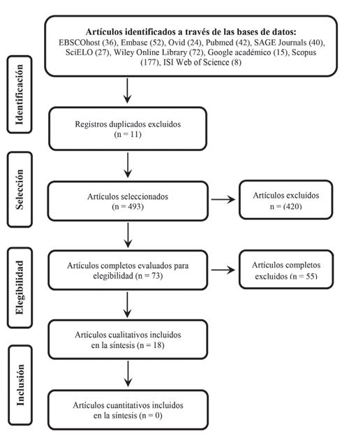 Metodología: revisión integradora siguiendo los lineamientos de Ganong; búsqueda en bases de datos: EMBASE, OVID, PUBMED, SAGE journals, SCIELO, Google Academic, ISI Web of Science y SCOPUS, artículos publicados entre los años 2000 y 2016.