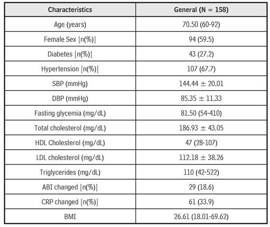 Therefore, the objective of this study was to investigate the agreement between modified FRS through the ankle-brachial index (ABI) and the high-sensitivity C-reactive protein (rsCRP) with the other scores.