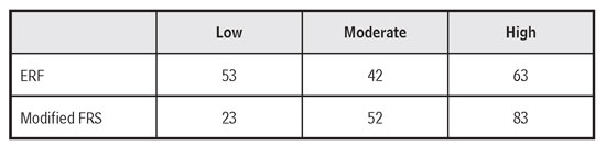 The reclassification of FRS significantly improves the validity of cardiovascular risk, 5 since no score used in the risk assessment accommodates all known factors, and it would not be possible at all places to continuously produce updated risk functions based on prospective cohort studies 21. Therefore, reclassification is considered the best viable alternative 21.