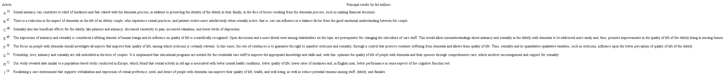 Lastly, there was a quantitative limitation of articles on the theme. Most studies focus on inappropriate sexual behaviors and hyper- or hypo-sexuality due to the dementia process, contributing to restricted reflections on the benefits of sexuality among elderly people living with dementia.