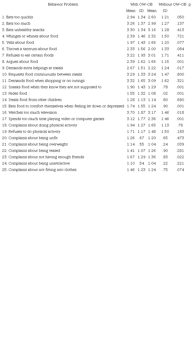 It was found that 10 behavior problems are more frequent in preschool children with overweight-obesity; the information is presented in Table 3.