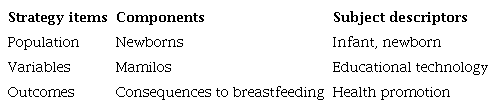 The Population, Variables, and Outcomes strategy (Table 1) was used, which also allows for the identification of the most ap propriate descriptors for the search intended in the review.