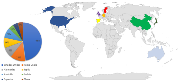 Regarding the country where the studies were conducted, most of them (11) were done in the United States; 3 studies in the United Kingdom; 2 studies in Germany, Japan and Australia; and only 1 study in Sweden, Spain, and China (Figure 3).
