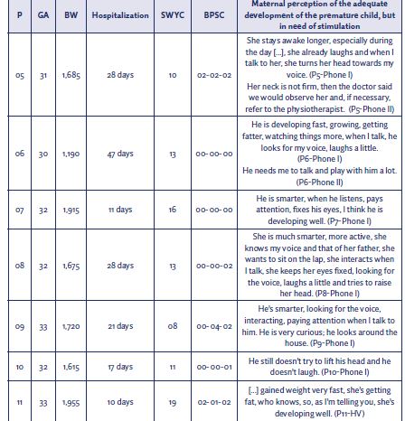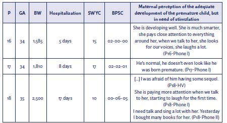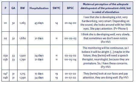 Maternal perception of the adequate development of the premature child, but in need of stimulation