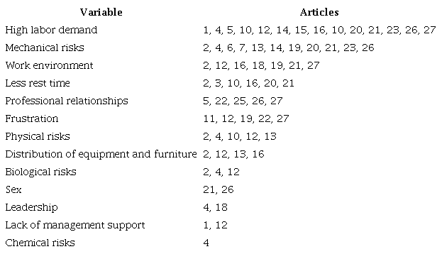 This research evaluated the results of published studies on factors associated with musculoskeletal disorders in nursing professionals working in critical areas. The conclusions suggest that, regardless of geographical location, all health professionals exhibit the same ailments 45.