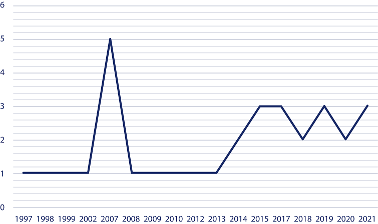 Regarding the years when the studies were published, the year 2008 was highlighted, as well as the period ranging from 2015 to 2021, as can be seen in Figure 2.
