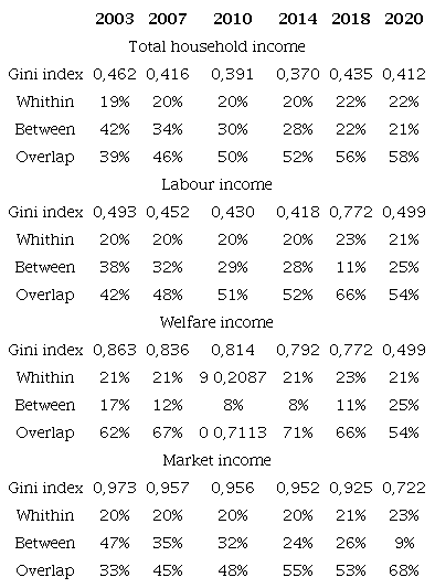 We will analyse these processes in more depth in the next section, examining each income source in terms of its components to provide more robust evidence for the aims of the present paper.