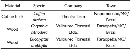 The Coffee husk, Corymbia citriodora, and Eucalyptus urophylla wood spectra confirmed the presence of carboxylic and phenolic chemical groups. Coffee husk showed higher fixed carbon and nutrient contents, which is directly related to higher lignin and extractives content found in its composition.